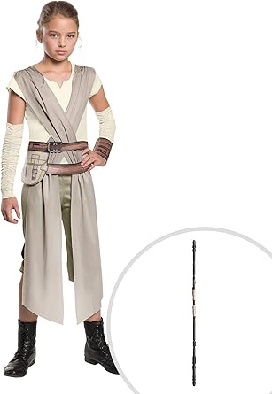 Amazon Com Star Wars Episode Vii Rey Costume For Child And Star Wars The Force Awakens Rey Staff Clothing