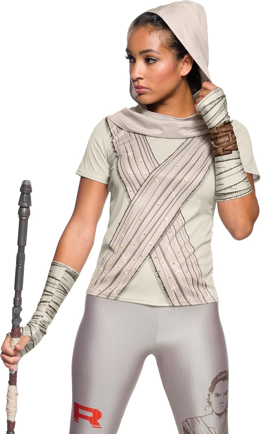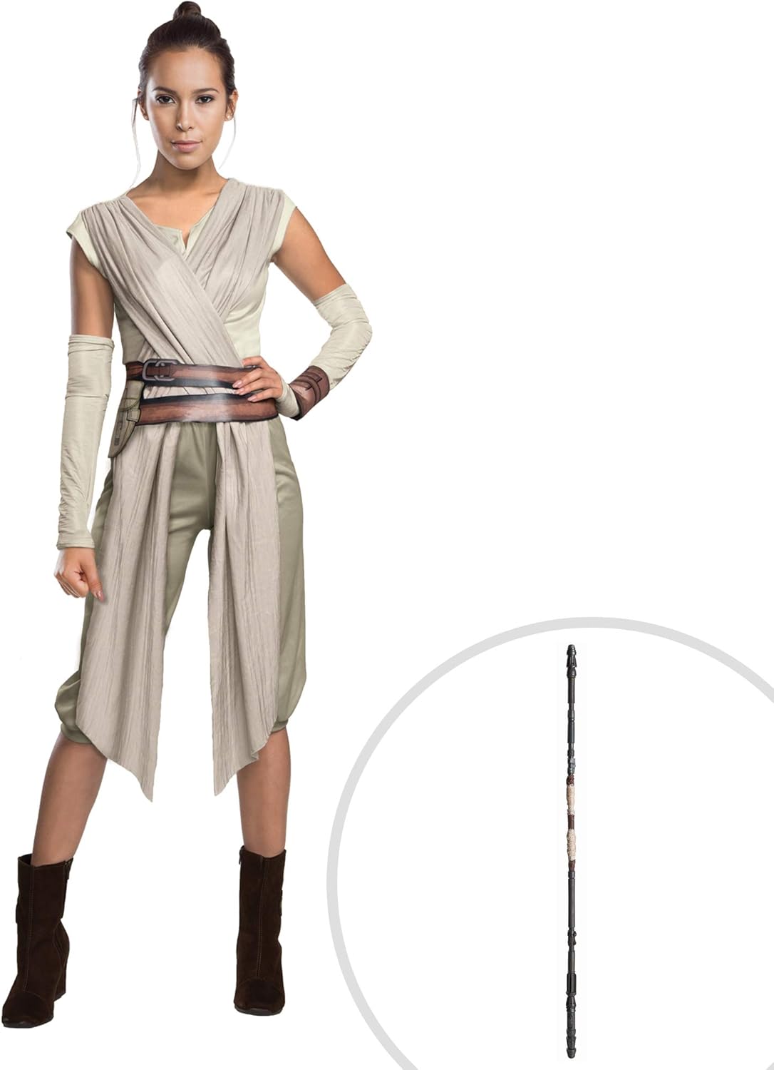 Amazon Com Adult Star Wars The Force Awakens Deluxe Rey Costume And Star Wars The Force Awakens Rey Staff Clothing
